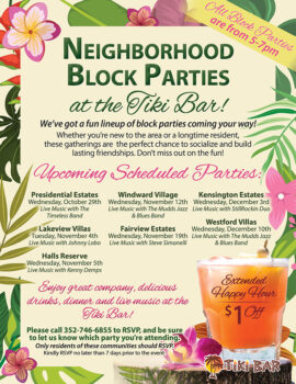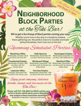 With so many events to choose from, you're sure to find several that you like! The fastest way to make old friends is to meet others who share your interests and activities. It will be hard to find room on your calendar for all the fun we offer at Citrus Hills. You can gather for a Neighborhood Block Party at the Tiki Bar, delight in some friendly competition at monthly Trivia Nights, taste menus from other countries at our weekly themed dinners, or kick back and enjoy some live musical entertainment over dinner, just to name a few.