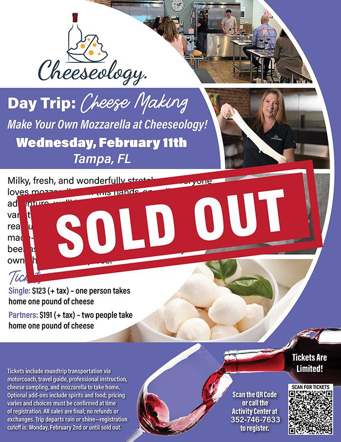 Home Events - Citrus Hills SOLD OUT: Day Trip: Cheeseology SOLD OUT: Day Trip: Cheeseology + Add to Google Calendar + iCal / Outlook export Date February 11 Expired! Time 10:45 am - 4:30 pm More Info Purchase Tickets Location Activity Center Activity Center Category Social EventsTravel Events Share this event