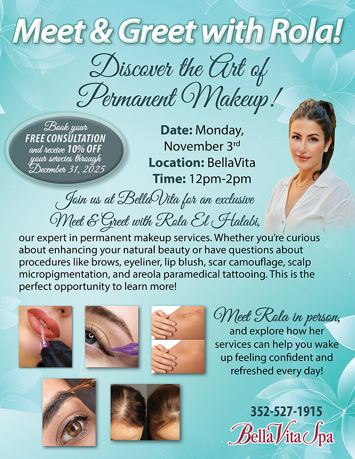 Home Events - Citrus Hills Meet and Greet with Rola: Discover the Art of Permanent Makeup Meet and Greet with Rola: Discover the Art of Permanent Makeup + Add to Google Calendar + iCal / Outlook export Date November 3 Time 12:00 pm - 2:00 pm Location BellaVita Spa & Fitness Category Fitness and Spa Share this event
