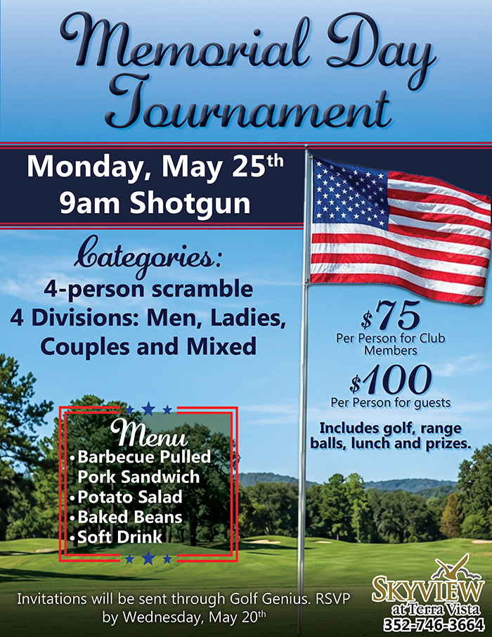 Memorial Day Tournament at Skyview Golf Course