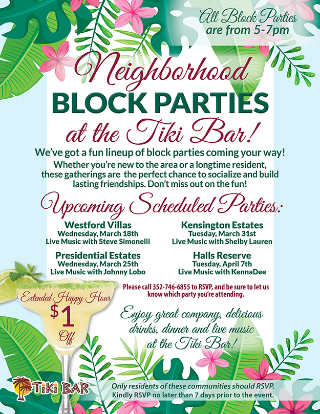Home Events - Citrus Hills Neighborhood Block Parties at The Tiki Bar – Westford Villas