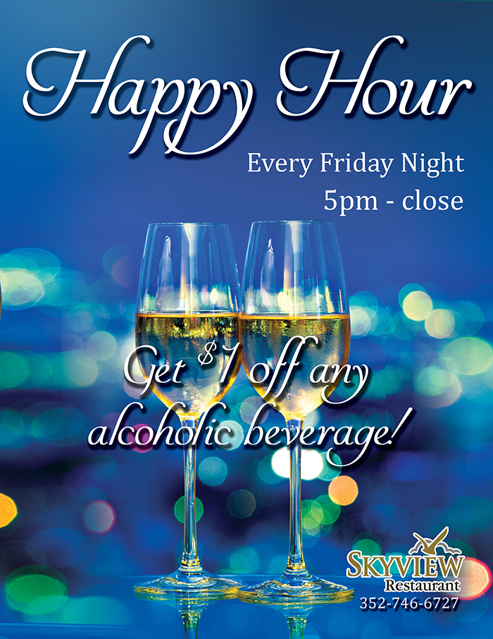 Home Events - Citrus Hills Skyview Happy Hour Skyview Happy Hour + Add to Google Calendar + iCal / Outlook export Date January 2 Time 5:00 pm - 8:00 pm Location Skyview Restaurant 2100 N Terra Vista Blvd, Hernando, FL 34442 Category Skyview Share this event