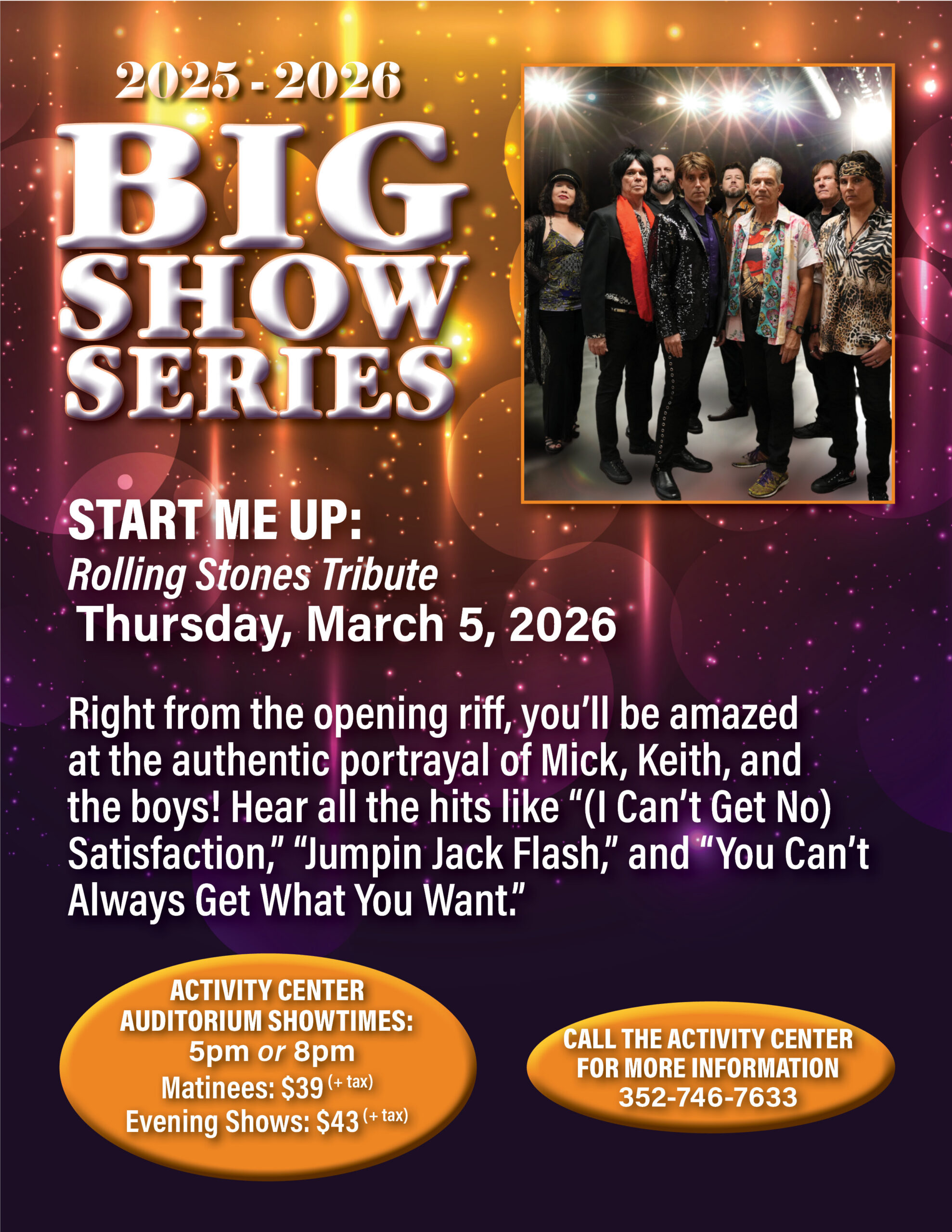 Home Events - Citrus Hills Start Me Up – The Rolling Stones Tribute Band Start Me Up – The Rolling Stones Tribute Band + Add to Google Calendar + iCal / Outlook export Date March 5 Time 5:00 pm - 9:00 pm Location Activity Center Activity Center Category Social Events Share this event