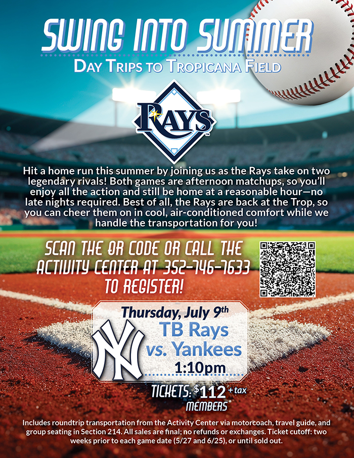 Home Events - Citrus Hills Swing into Summer: Day Trip to Tropicana Field, Tampa Bay Rays vs. New York Yankees