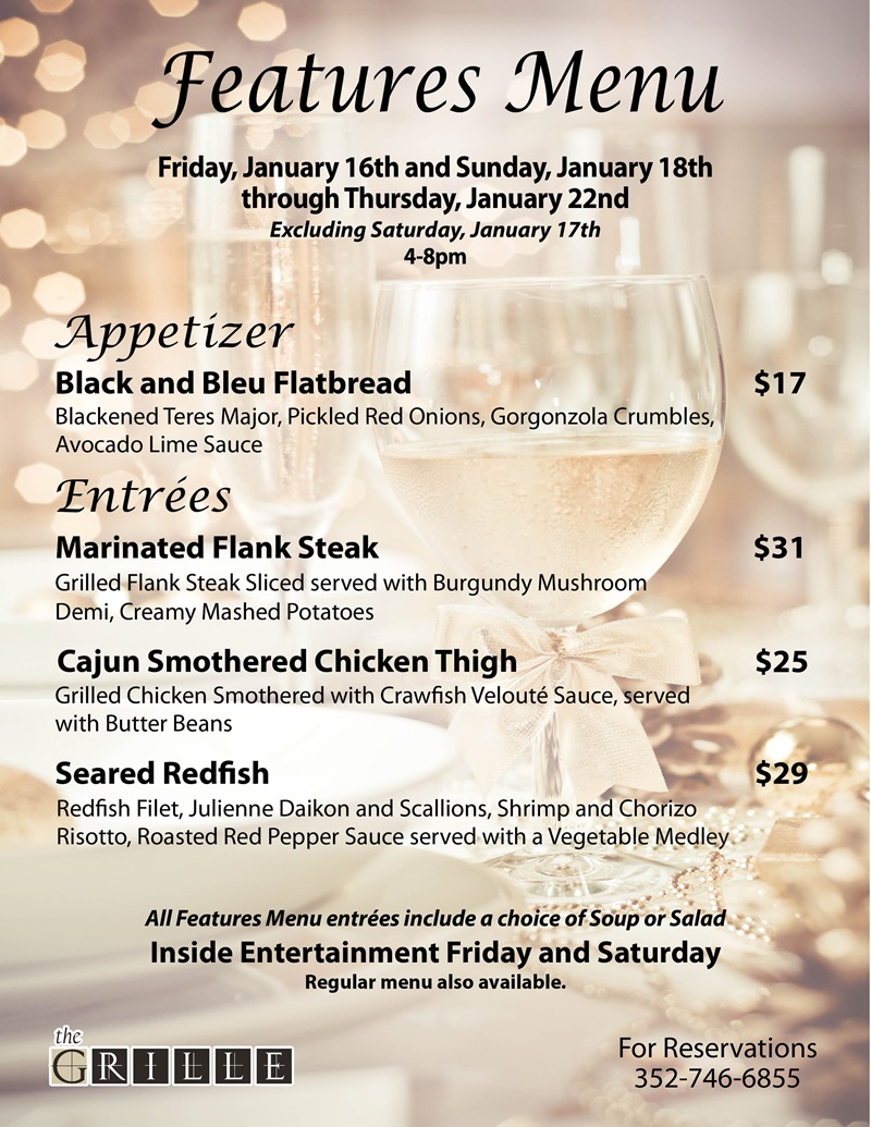 Home Events - Citrus Hills Grille Features Menu
