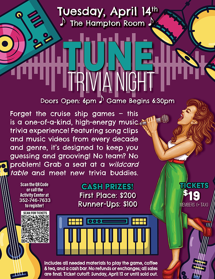 Home Events - Citrus Hills Tune Trivia at the Hampton Room Tune Trivia at the Hampton Room + Add to Google Calendar + iCal / Outlook export Date April 14 Time 6:00 pm - 7:30 pm More Info Purchase Tickets Location Hampton Room Category Club EventsSocial Events Purchase Tickets Share this event