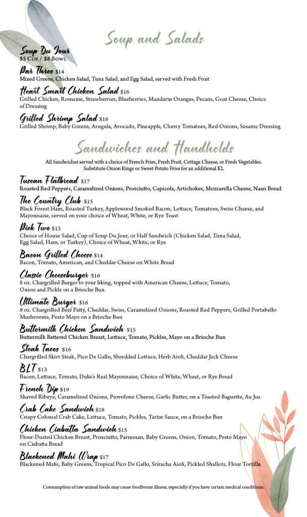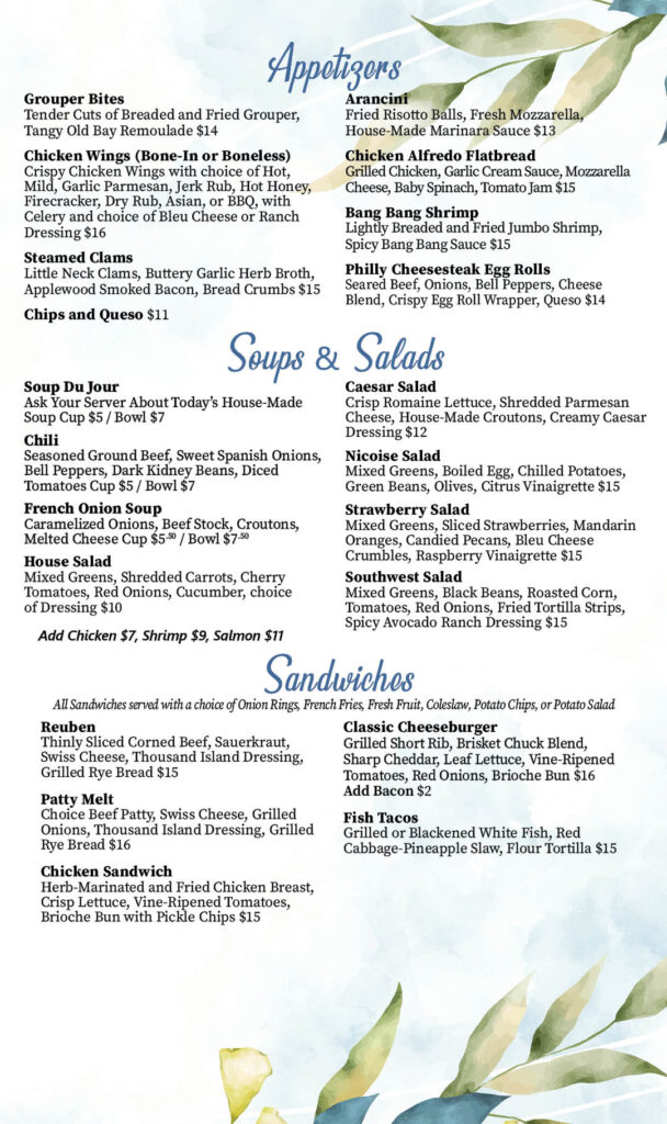 Skyview Lunch Menu