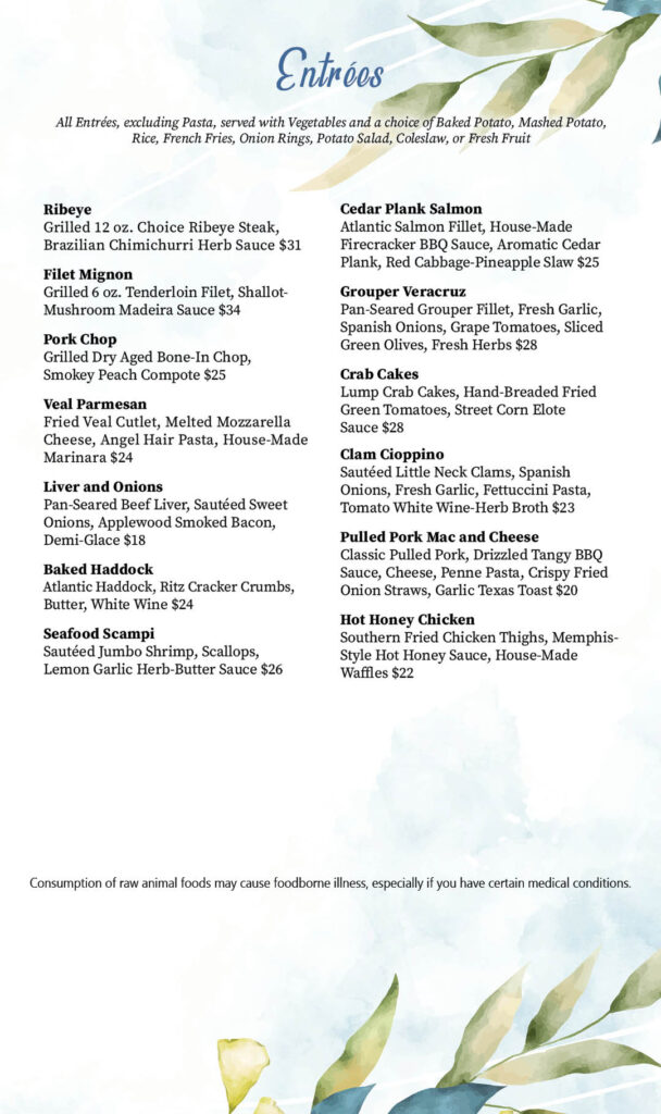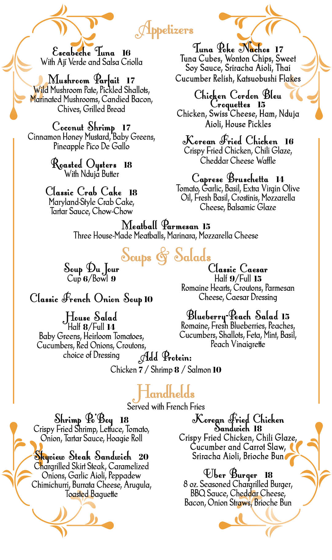 Skyview Dinner Menu