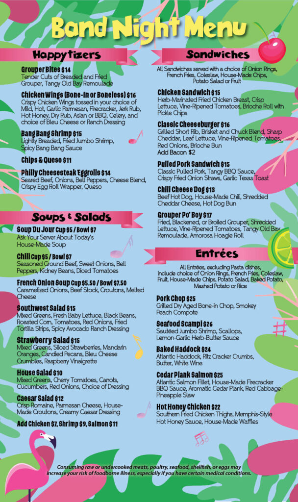 Tiki Band Night Menu