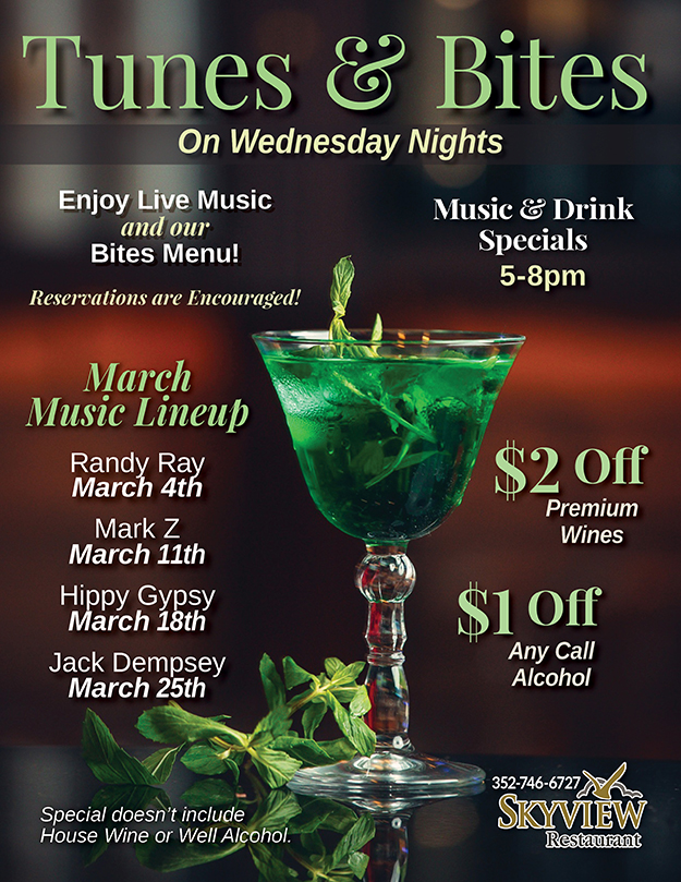 Sunday: Lunch 12-4pm with Mimosa & Bloody Mary Specials on alternating days and Live Music 2-6pm