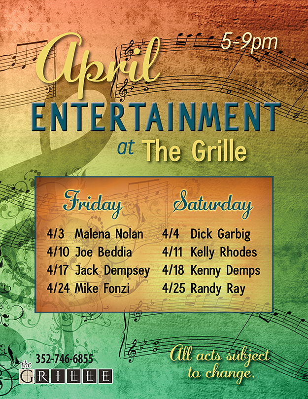 Monday: Lunch 12-4pm only, Band Night Menu 4-8pm & Live Music 5-8pm