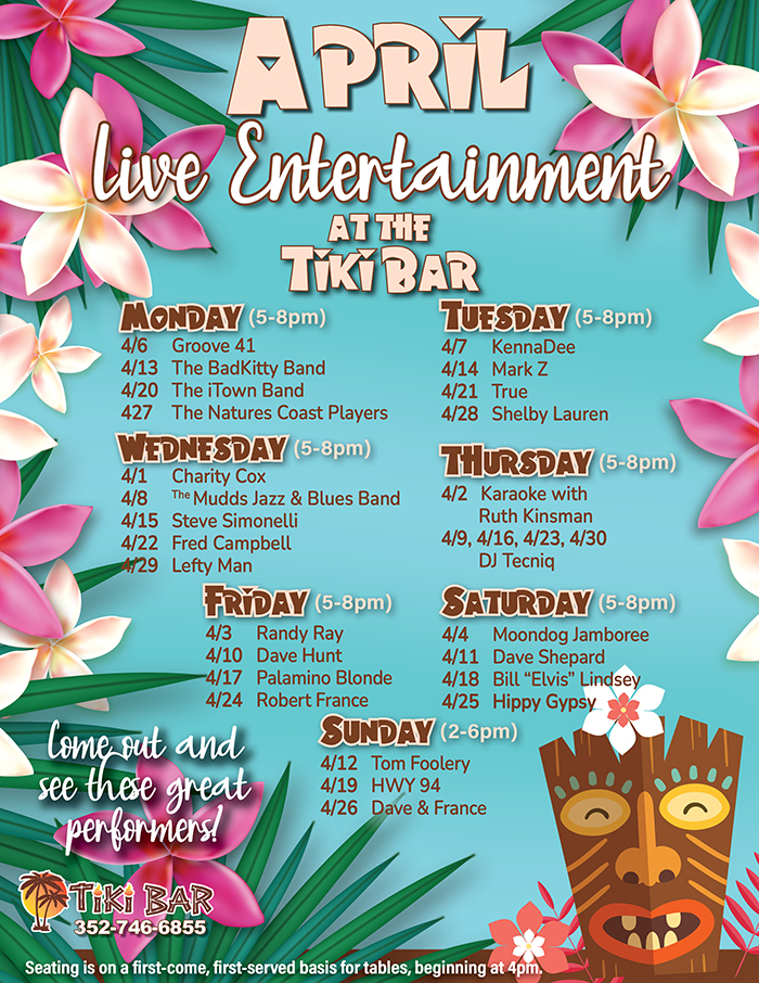First Thursday of the Month: Tiki Dinner Menu 4-8pm & Karaoke Night 5-8pm with Ruth Kinsman